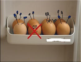 Так они дольше сохранят свежесть. Все дело в том, что на тупом конце находится воздушная камера и имеются поры, через которые внутрь поступает кислород. К тому же в этом конце постоянно курсируют бактерии, если же положить яйцо тупым кончиком вниз, то все бактерии всплывут и попадут в само яйцо.